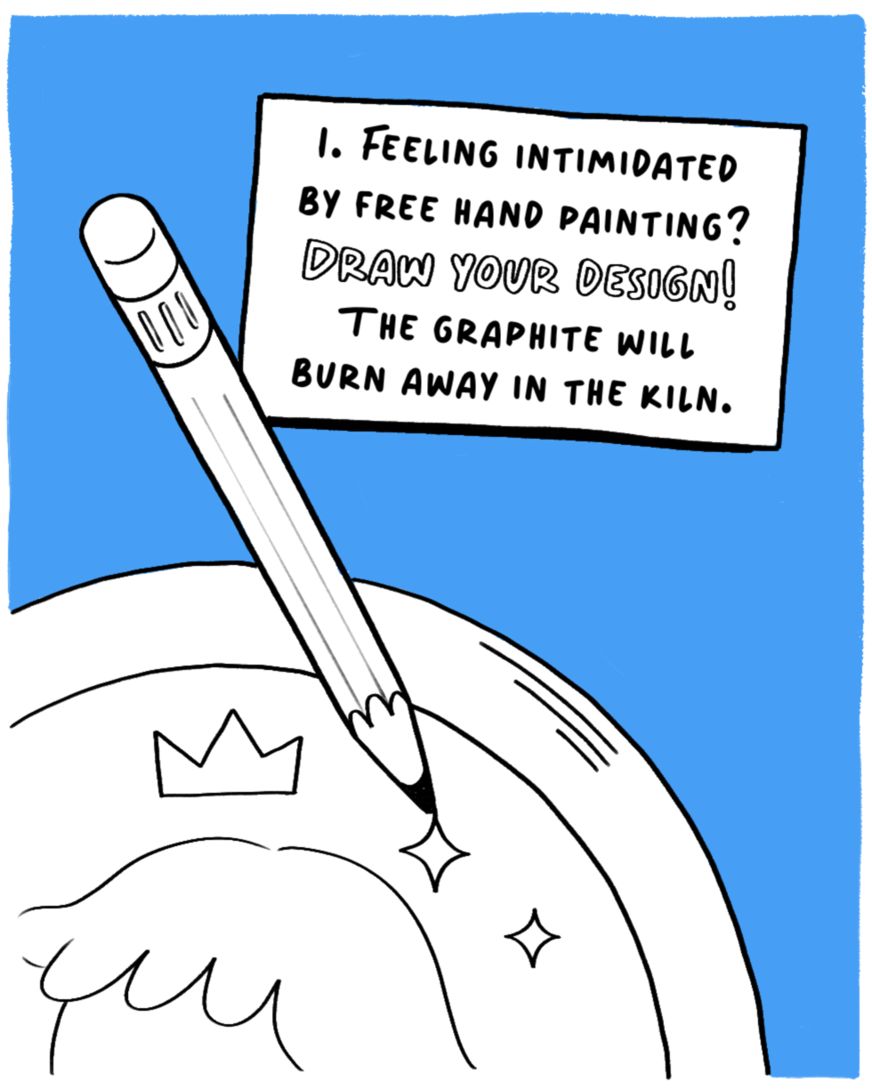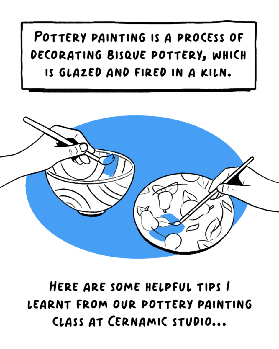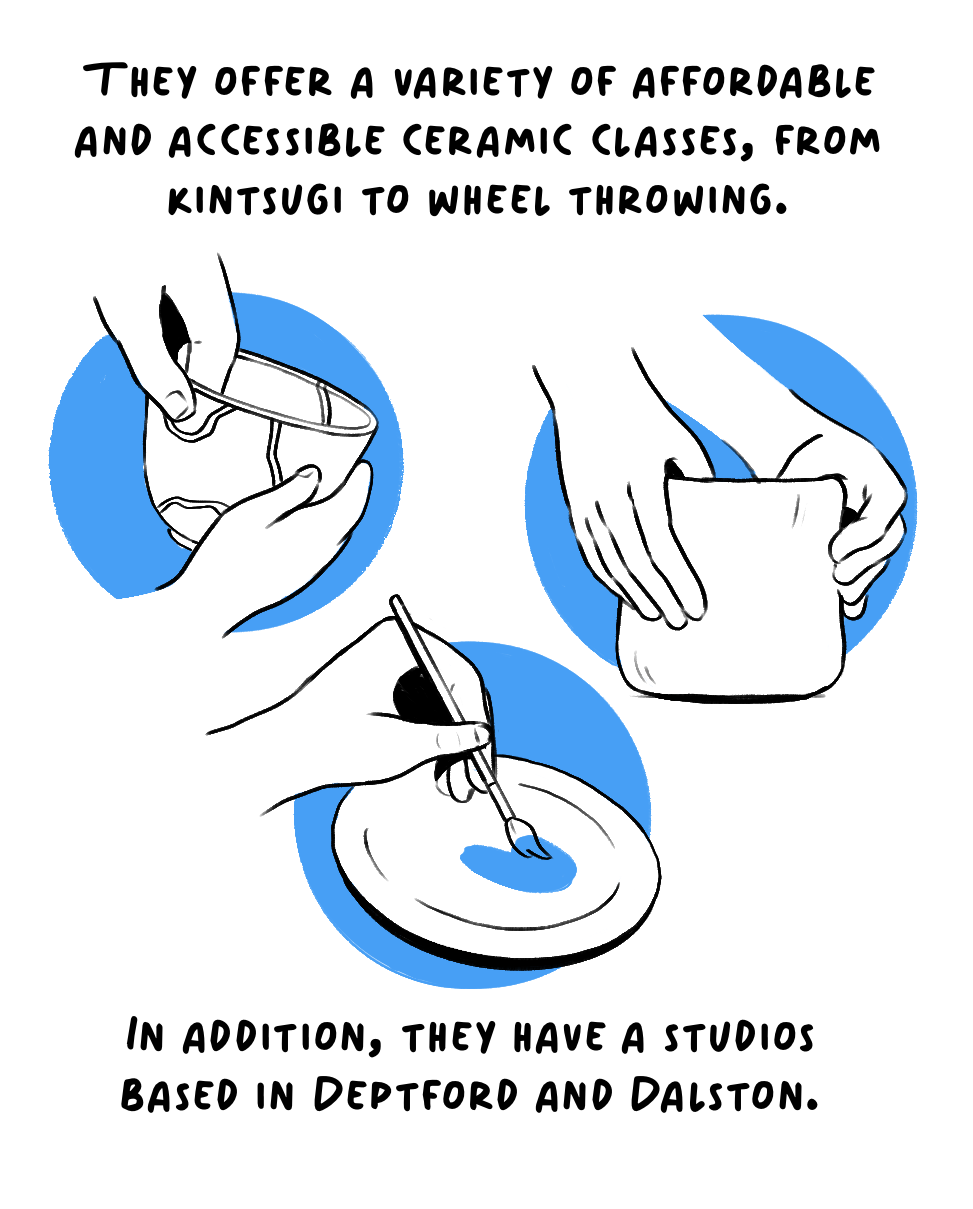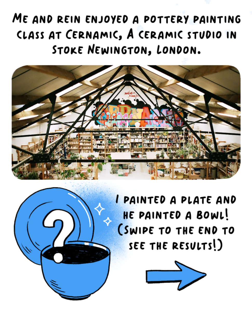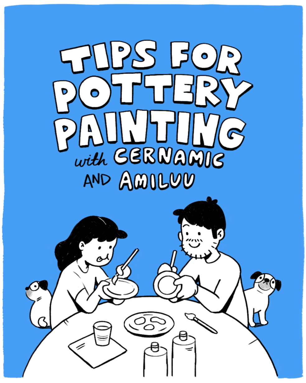 I worked with London ceramic studio, Cernamic, to create a comic strip that explains what pottery painting is and tips for anyone to get involved. I kept the colour palette simple, opting for the colours white and blue to evoke the feel of classic white and blue china.