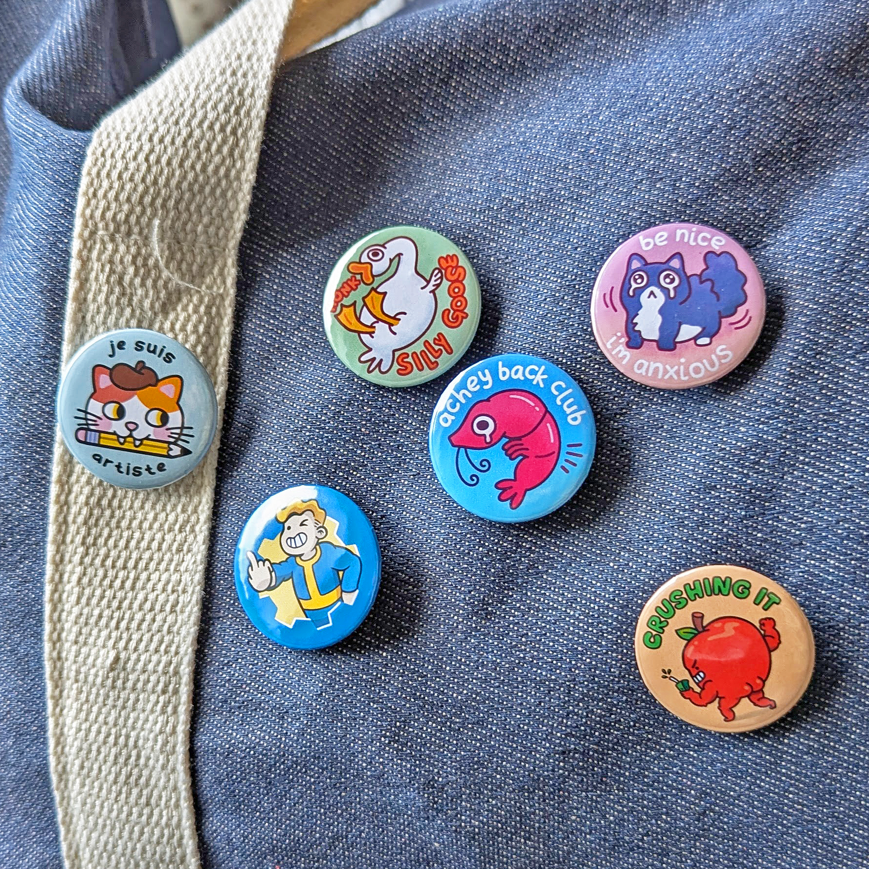 I create a joyful range of illustrated goodies: think prints, badges, stickers, bookmarks, notepads, t-shirts, and more, all bursting with whimsy, humour, and a dash of chaos!