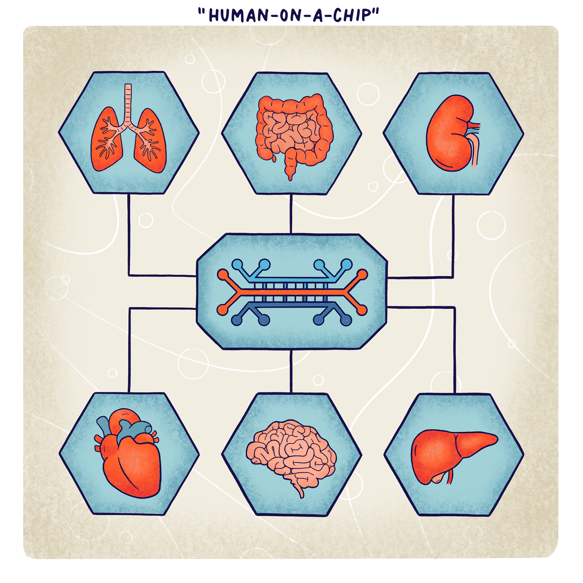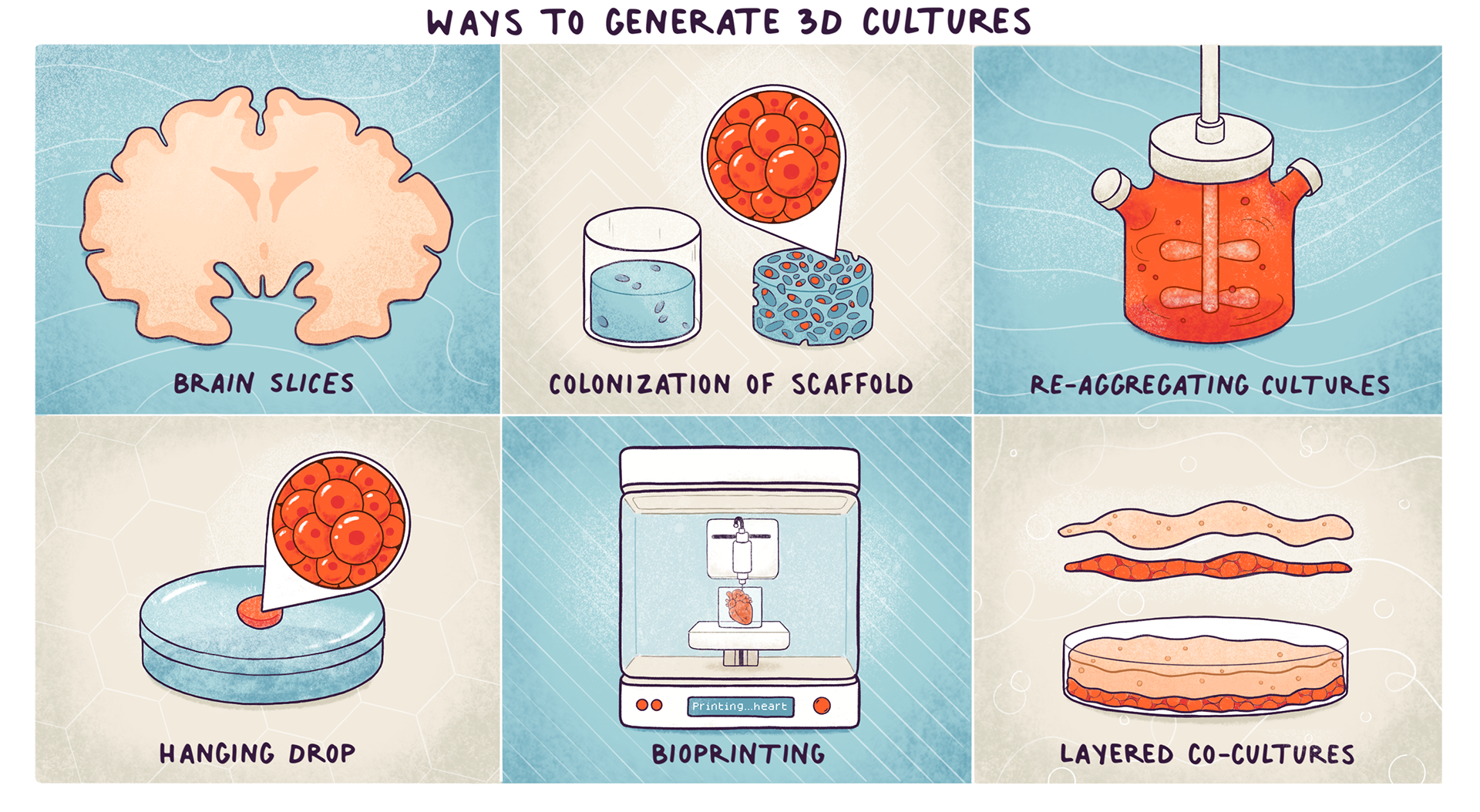 I worked with Thomas Hartung, MD, PhD, who is a professor at John Hopkins Bloomberg School of Public Health. He submitted an article to Frontiers For Young Minds on bioengineered human organs as a disruptive technology. He commissioned me to provide a couple of illustrations that visually convey the methods for generating 3D cultures, and the concept of “humans-on-a-chip”.