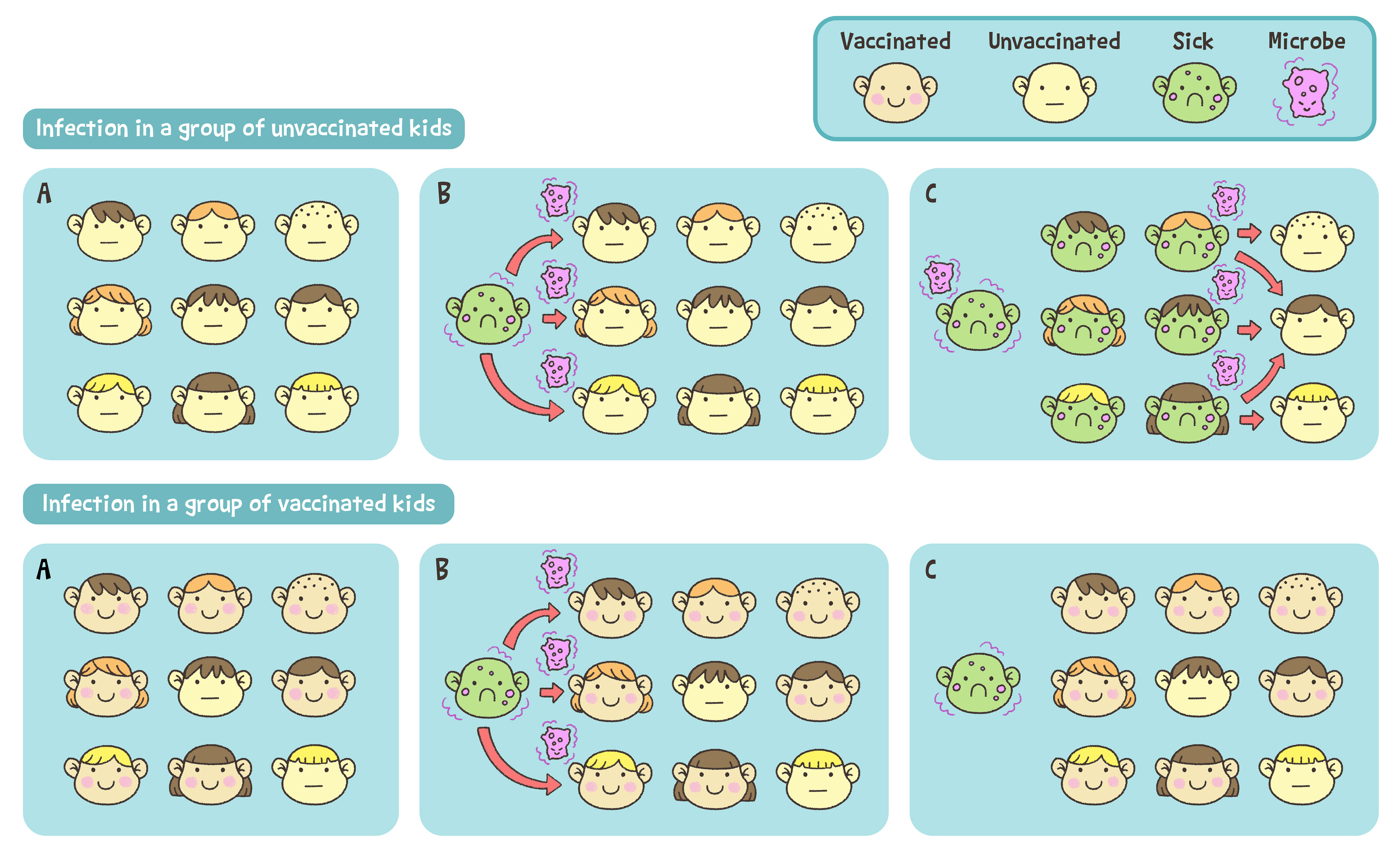 The three illustrations below visually demonstrate herd immunity, why vaccines work, and why they are important. I use a simple cartoon-like style to visually engage young audiences and get them learning in a fun way! The published article can be found here.